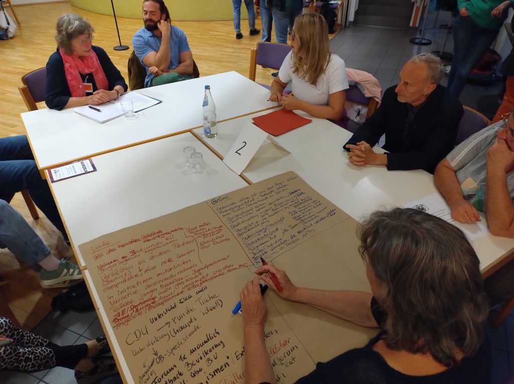 Nach Abschluss der Thementische gab es eine kurze und erkenntnisreiche Zusammenfassung der ProtokollantInnen. Souverän moderiert wurde die zum ersten mal in dieser Form organisierte Veranstaltung von der Journalistin und Hochschuldozentin Sigrun Rottmann – herzlichen Dank dafür!